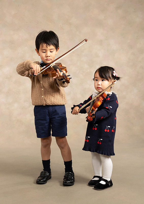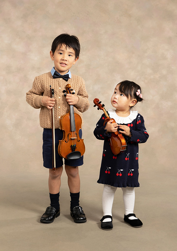 兄妹一緒にバイオリンを持ってのツーショット🎻